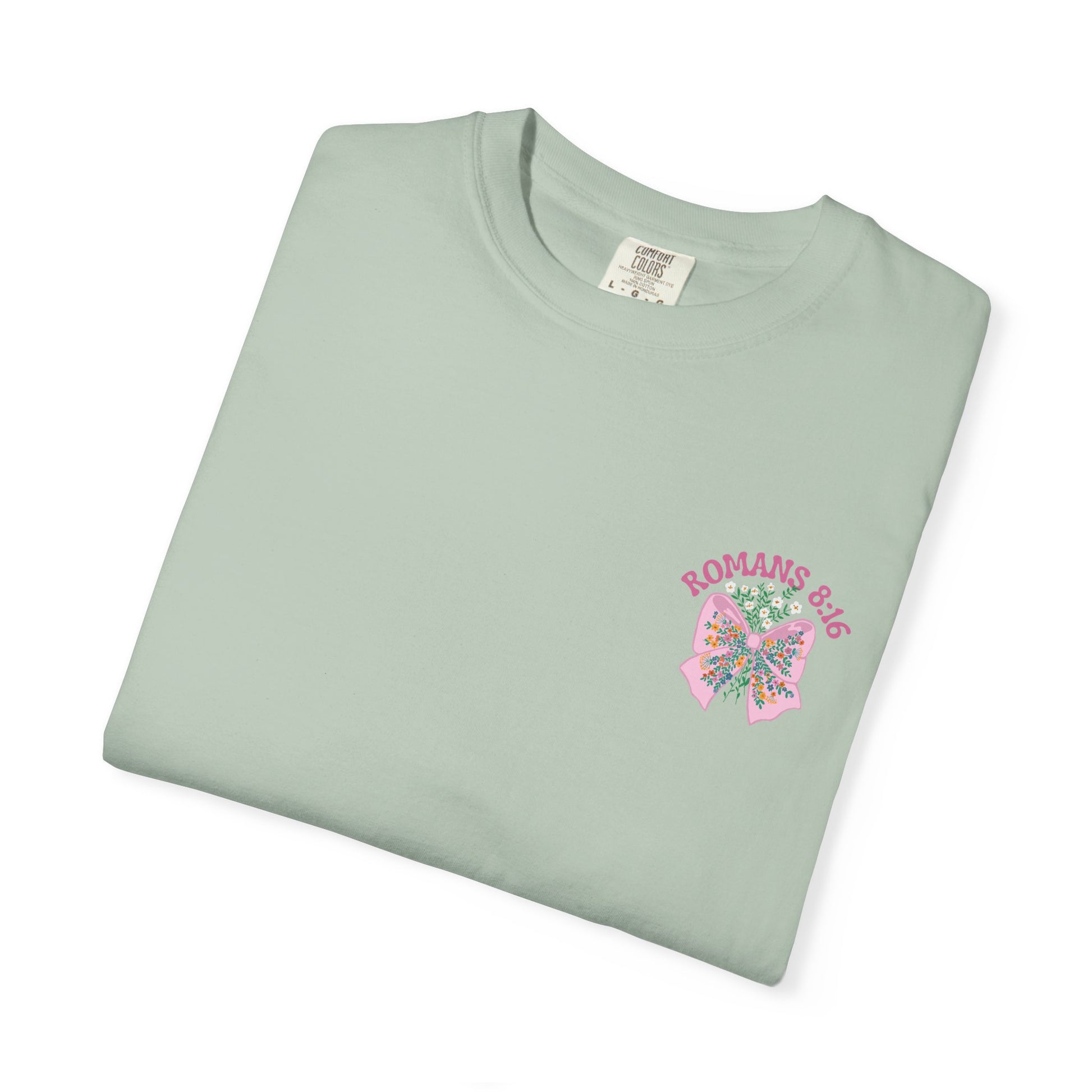 Christian t-shirt for women, Child of God shirt, Romans 8:16 apparel, Bible verse t-shirt, Christian gifts for her, faith-based fashion.