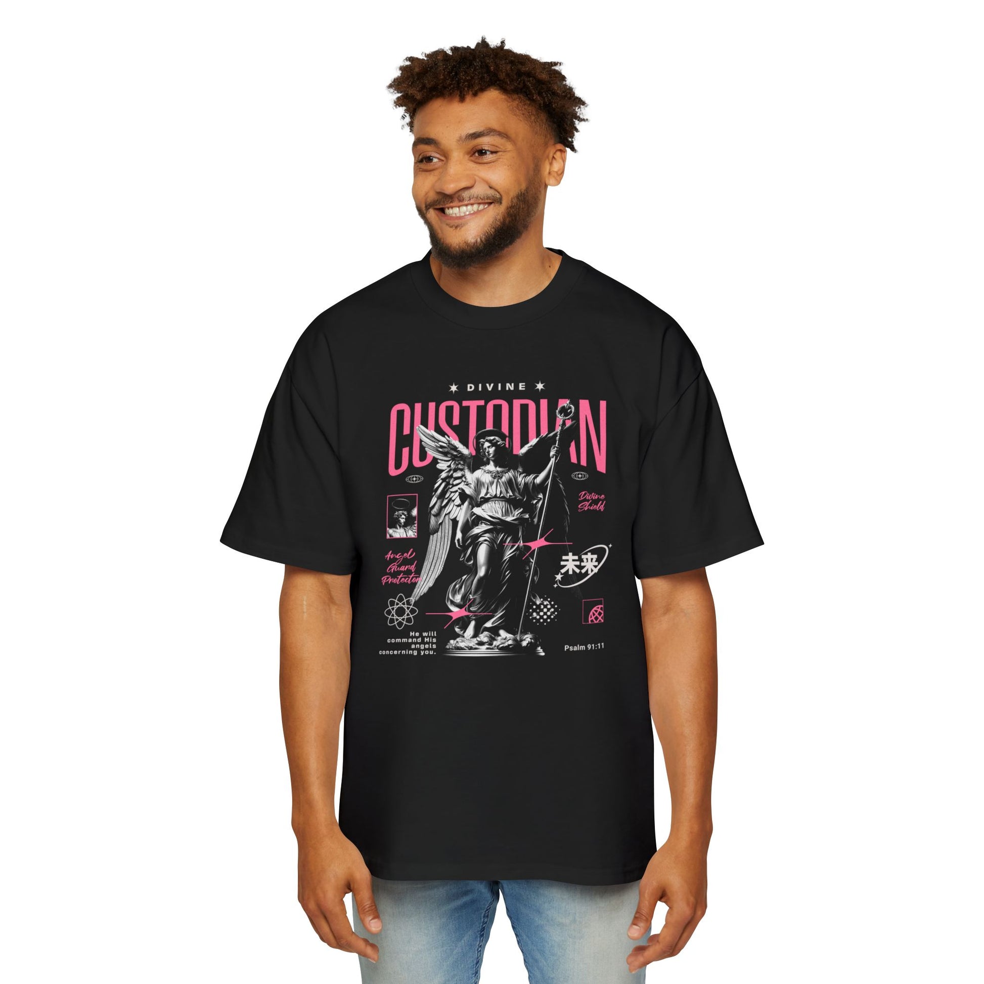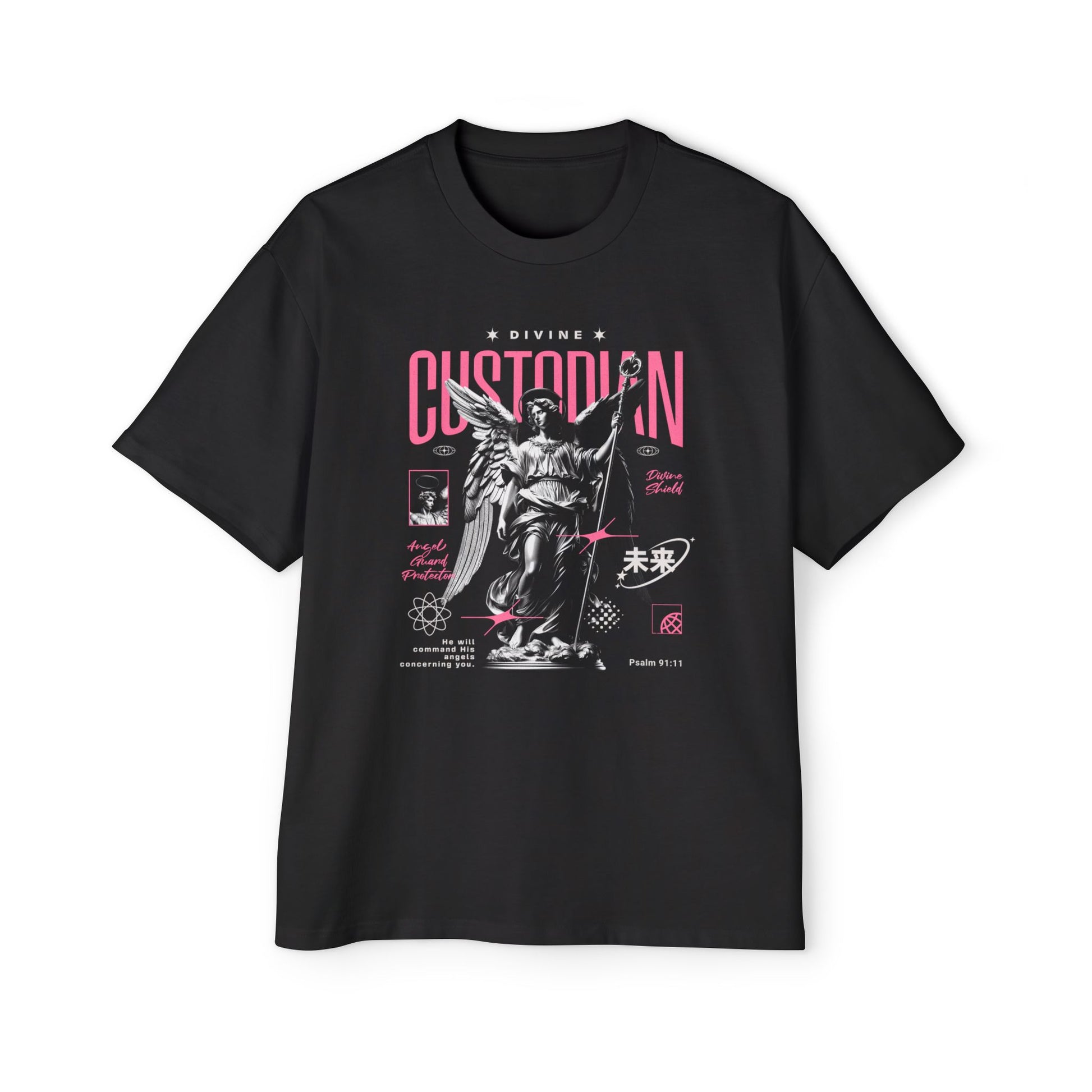 Divine Custodian Oversize T-Shirt | Psalm 91:11 | Premium Heavy Weight Christian Oversized Tee | Angel Guard Protection | Faith & Flow