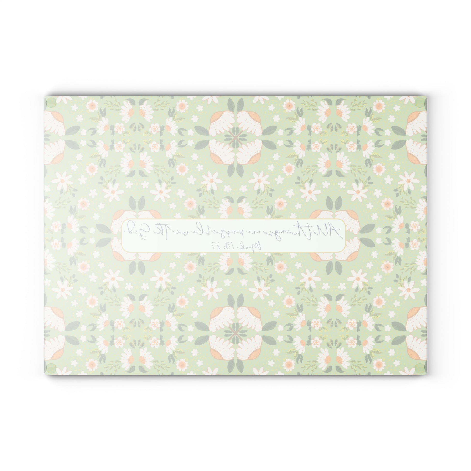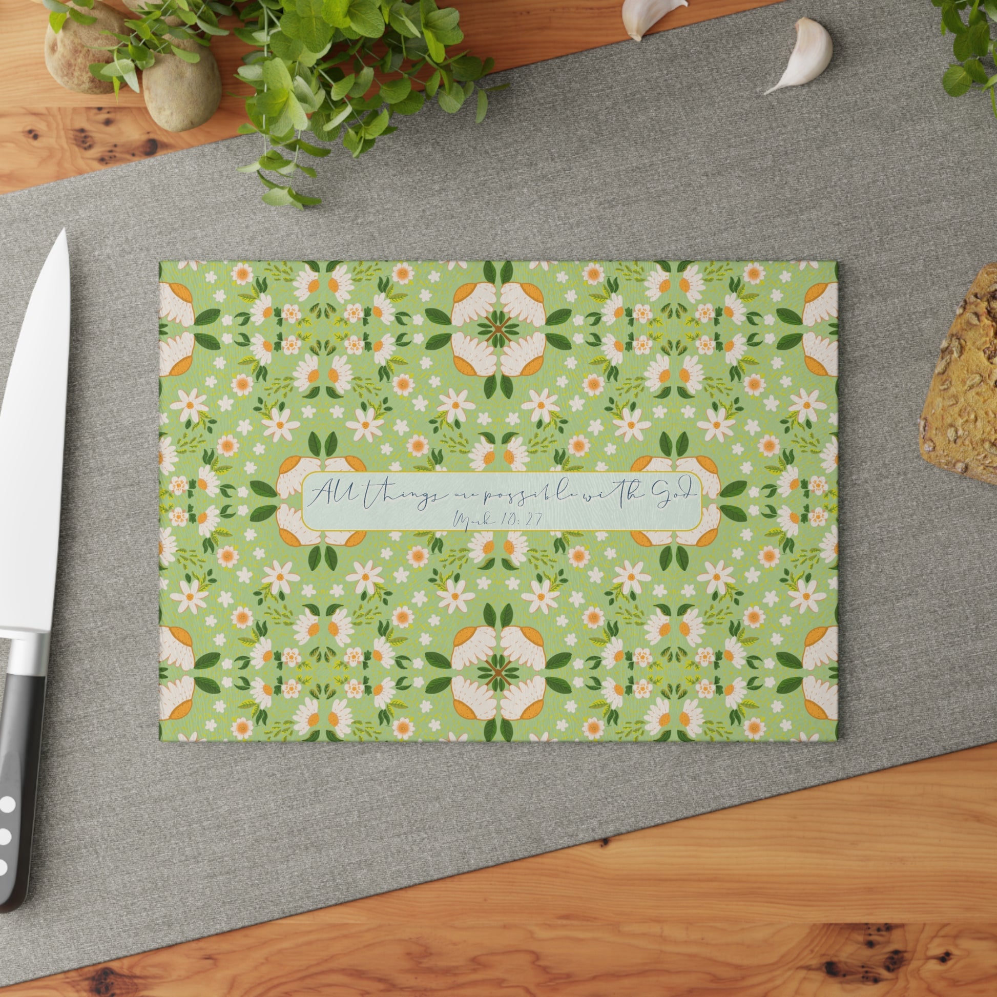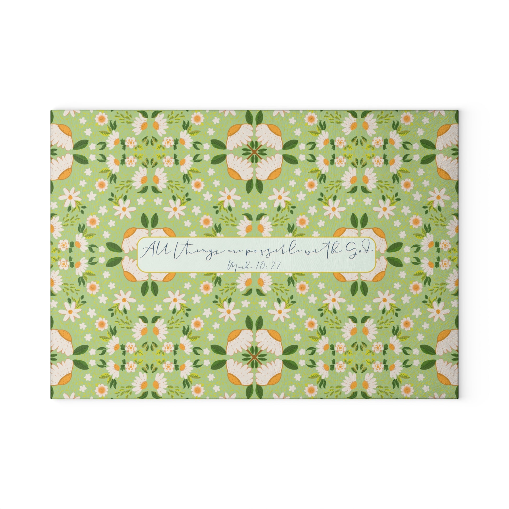 Floral Glass Cutting Board - 'All Things Are Possible' Inspirational Kitchen Decor