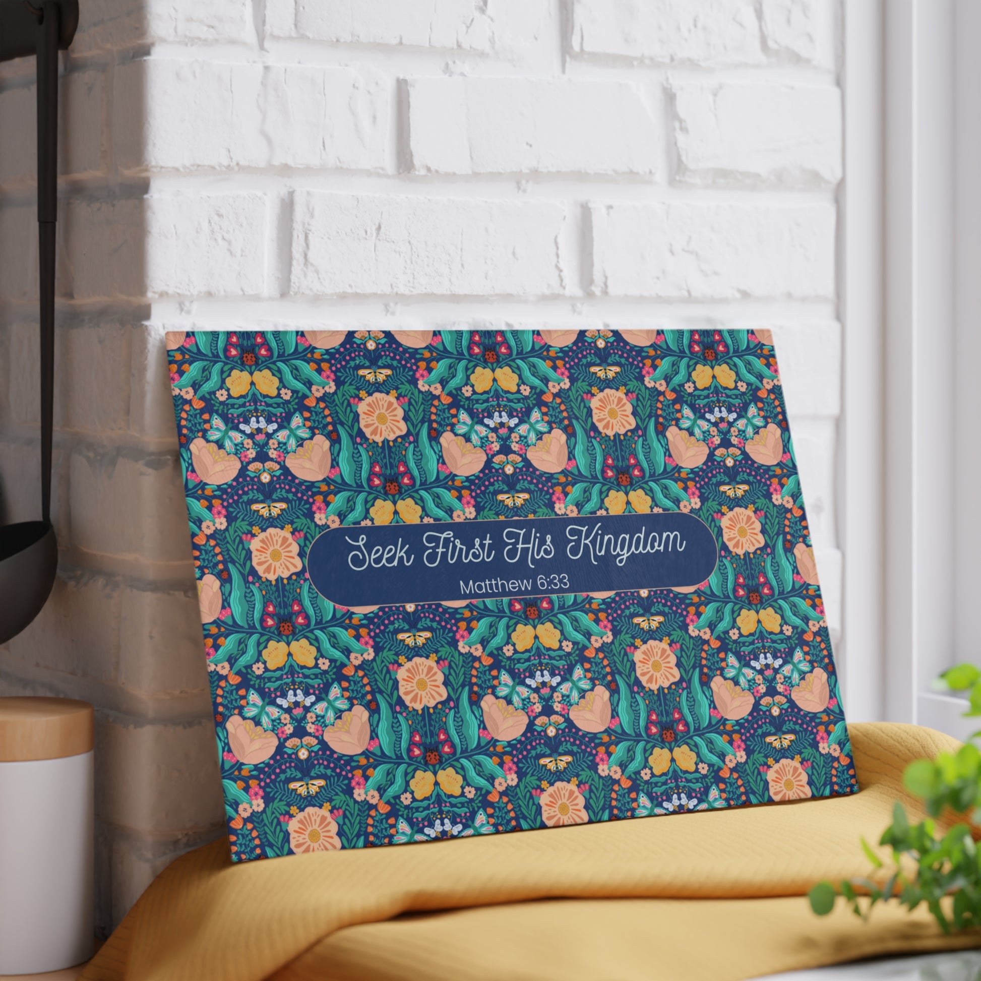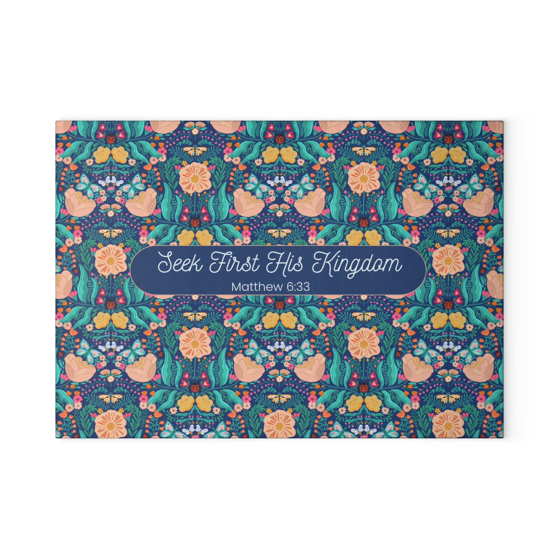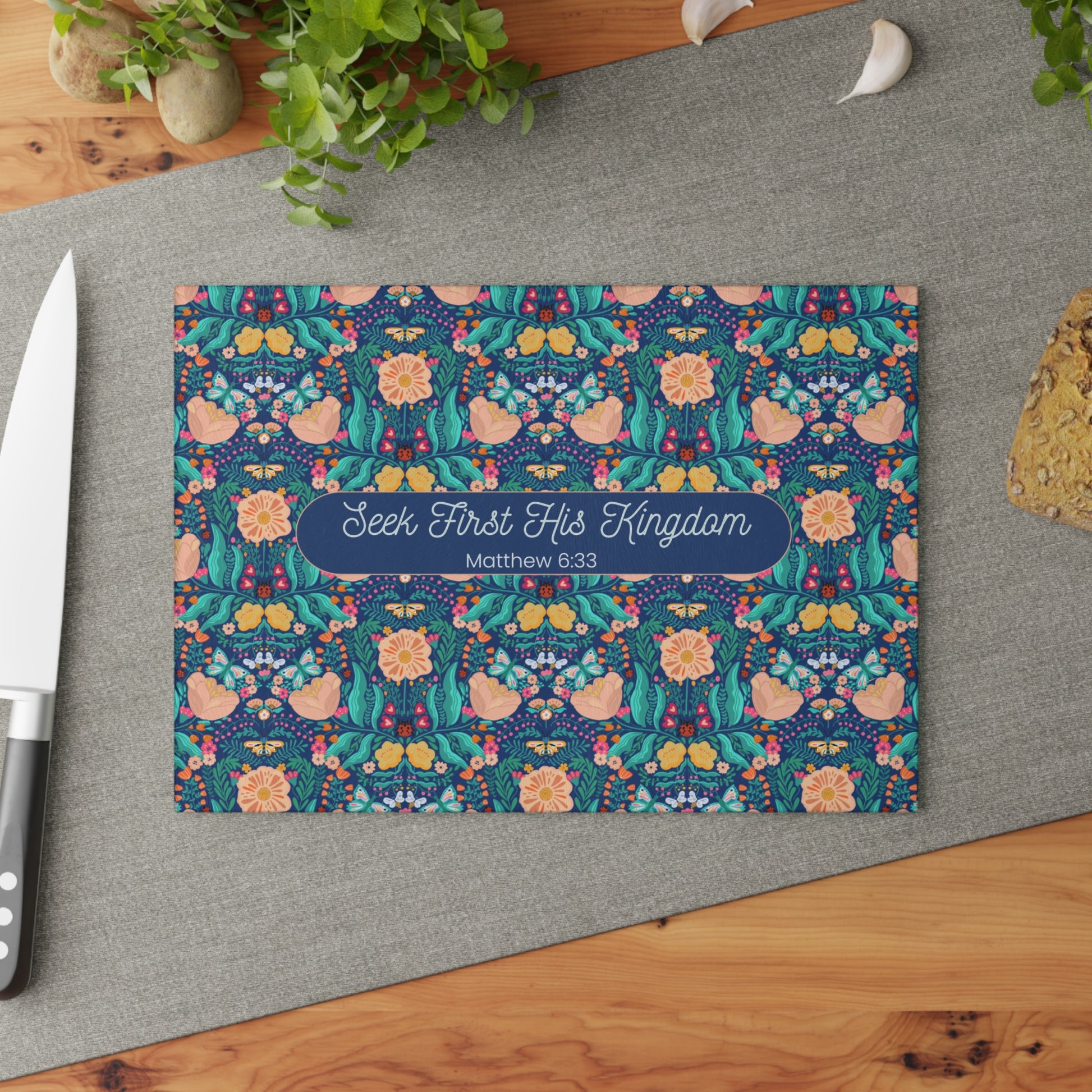Glass Cutting Board - Seek First His Kingdom - Matthew 6:33 Mothers Day Gift