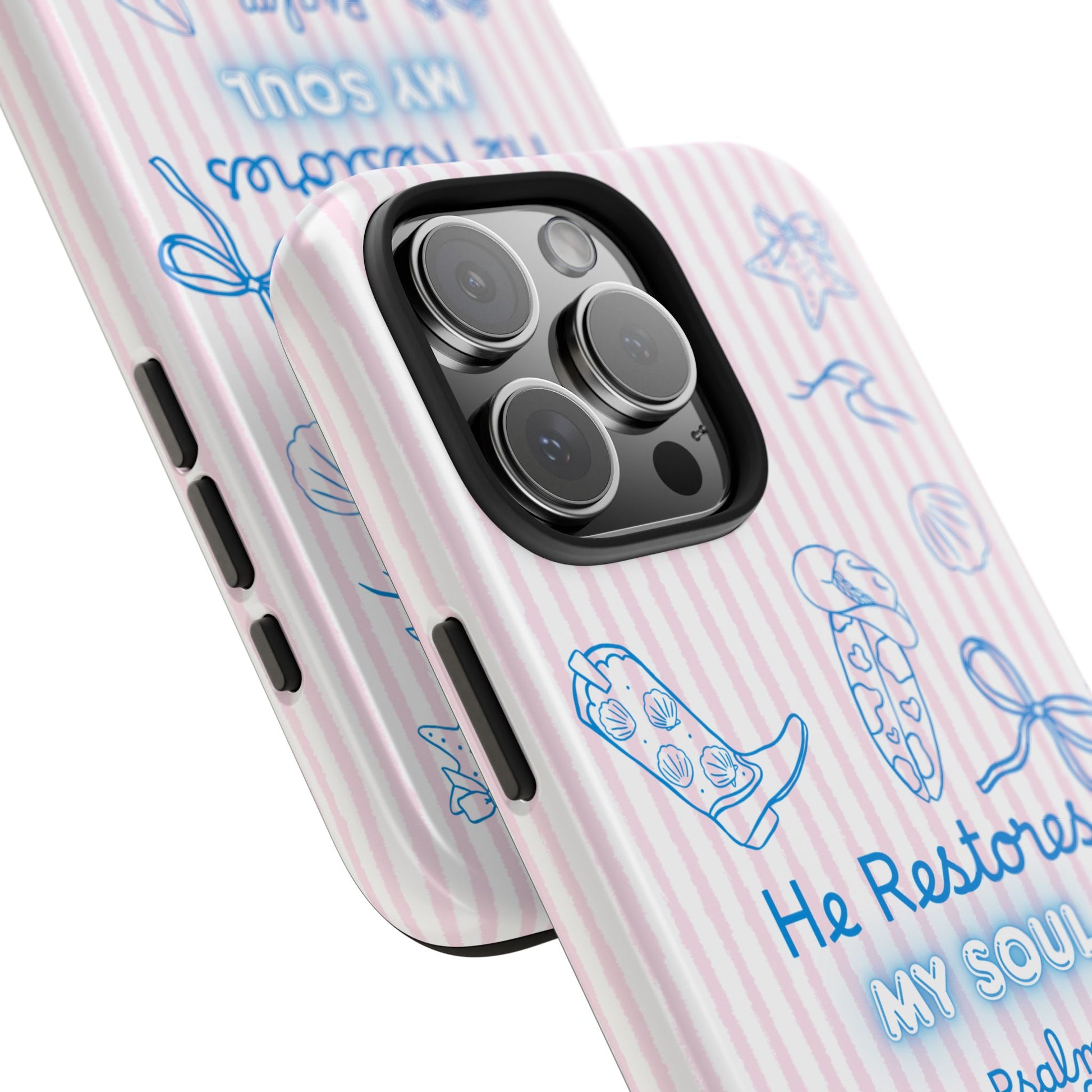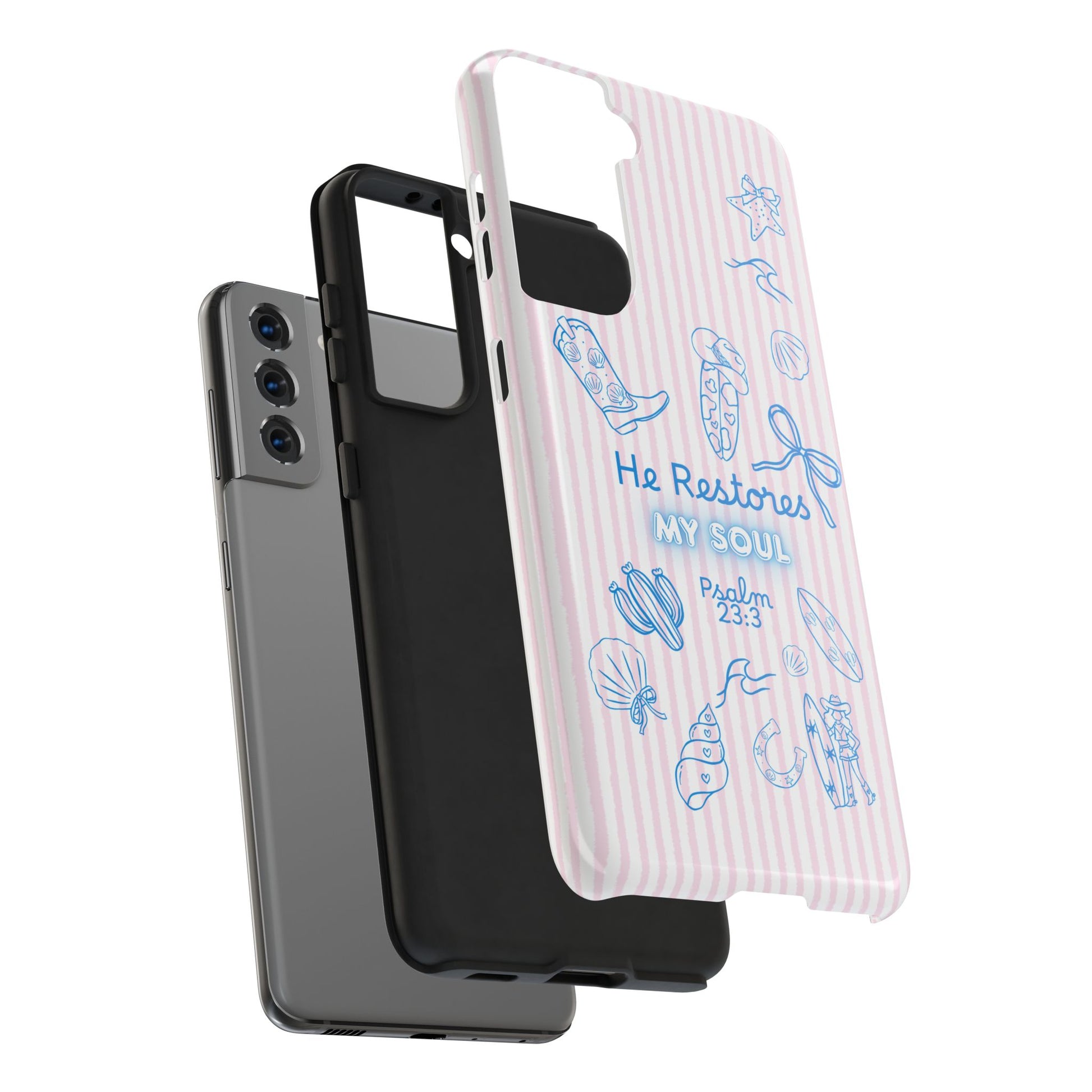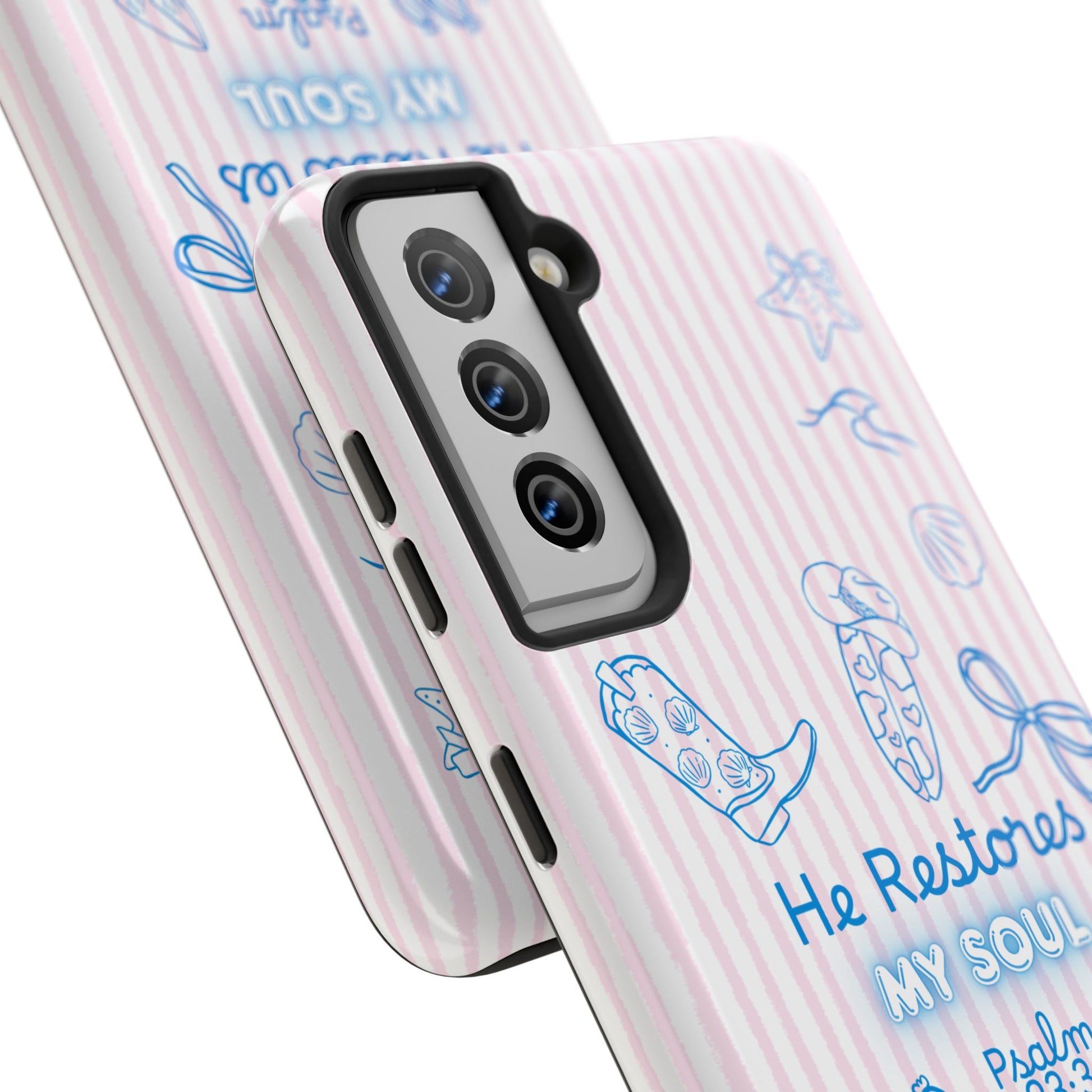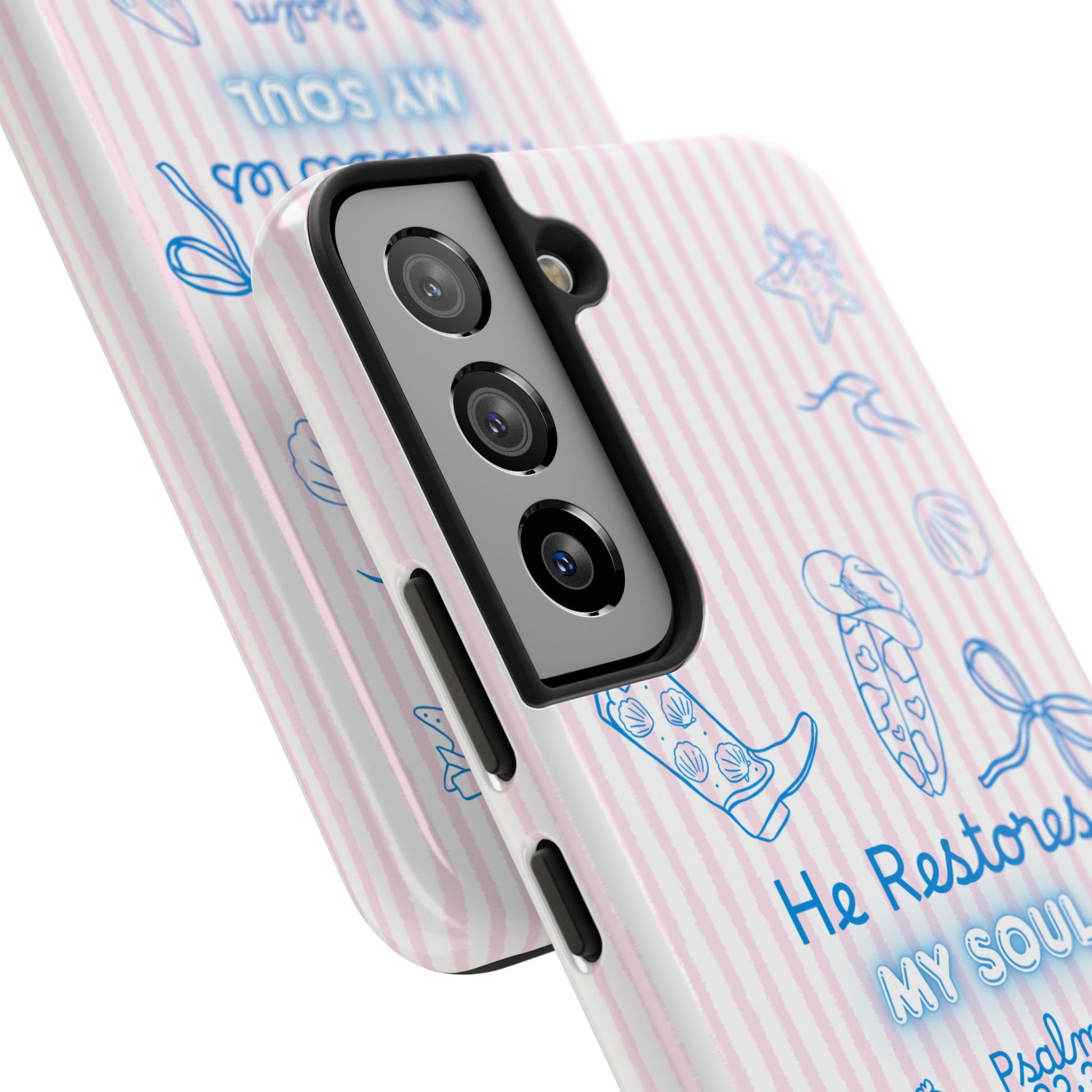 Inspirational Tough Phone Case - 'He Restores My Soul' with Psalm 23:3