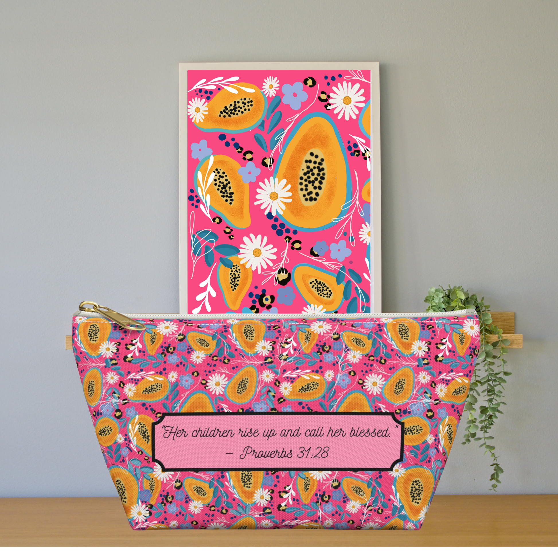 Mother’s Day Floral Accessory Pouch – Proverbs 31:28